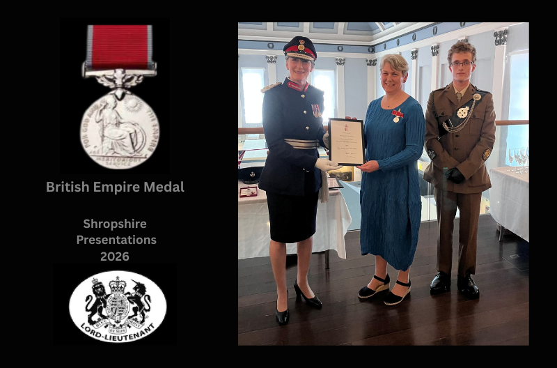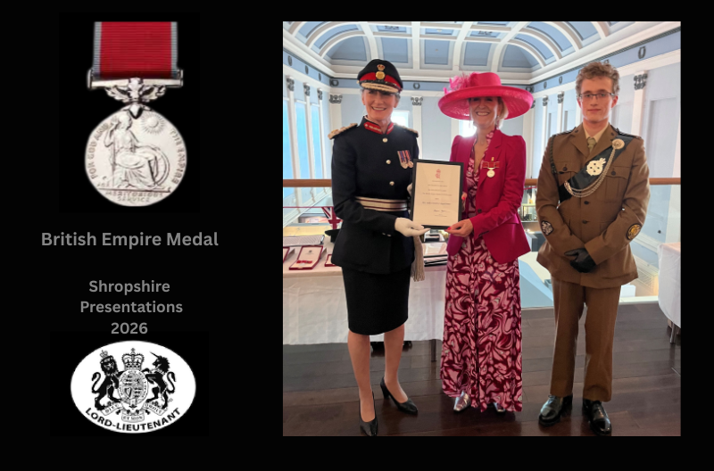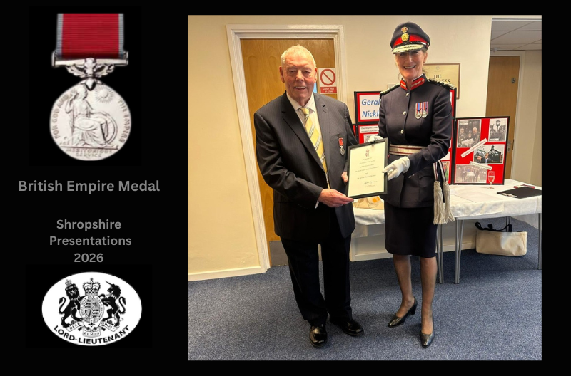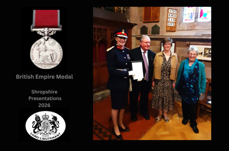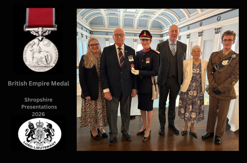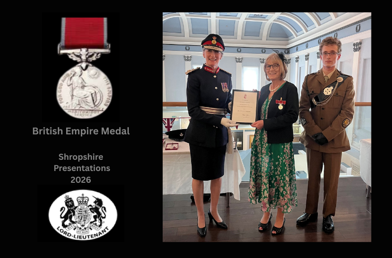Eight Shropshire residents awarded British Empire Medals in the King’s New Year Honours 2026 were presented with their medals by Shropshire’s Lord Lieutenant Anna Turner.