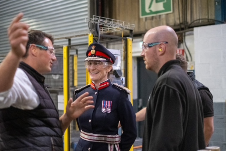 During the visit, the Lord-Lieutenant toured the company’s facilities, met with employees, and formally presented the King’s Award on behalf of His Majesty The King.